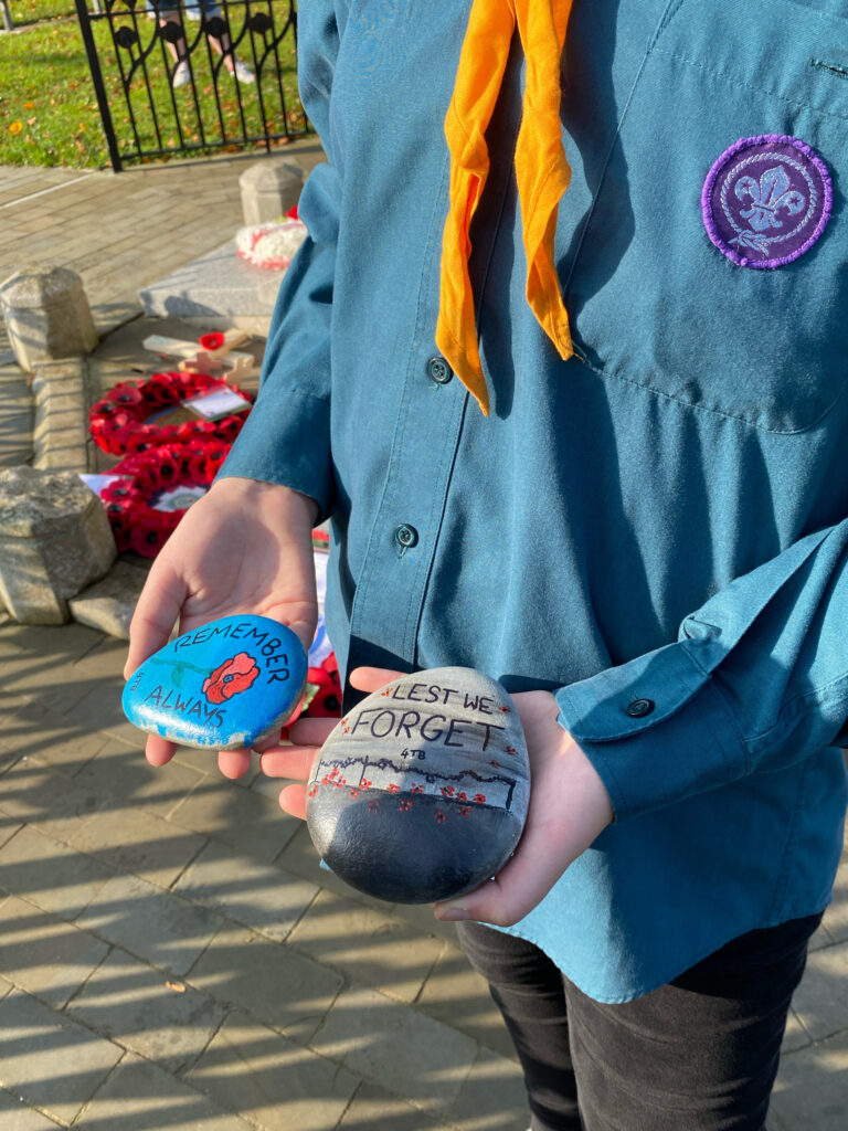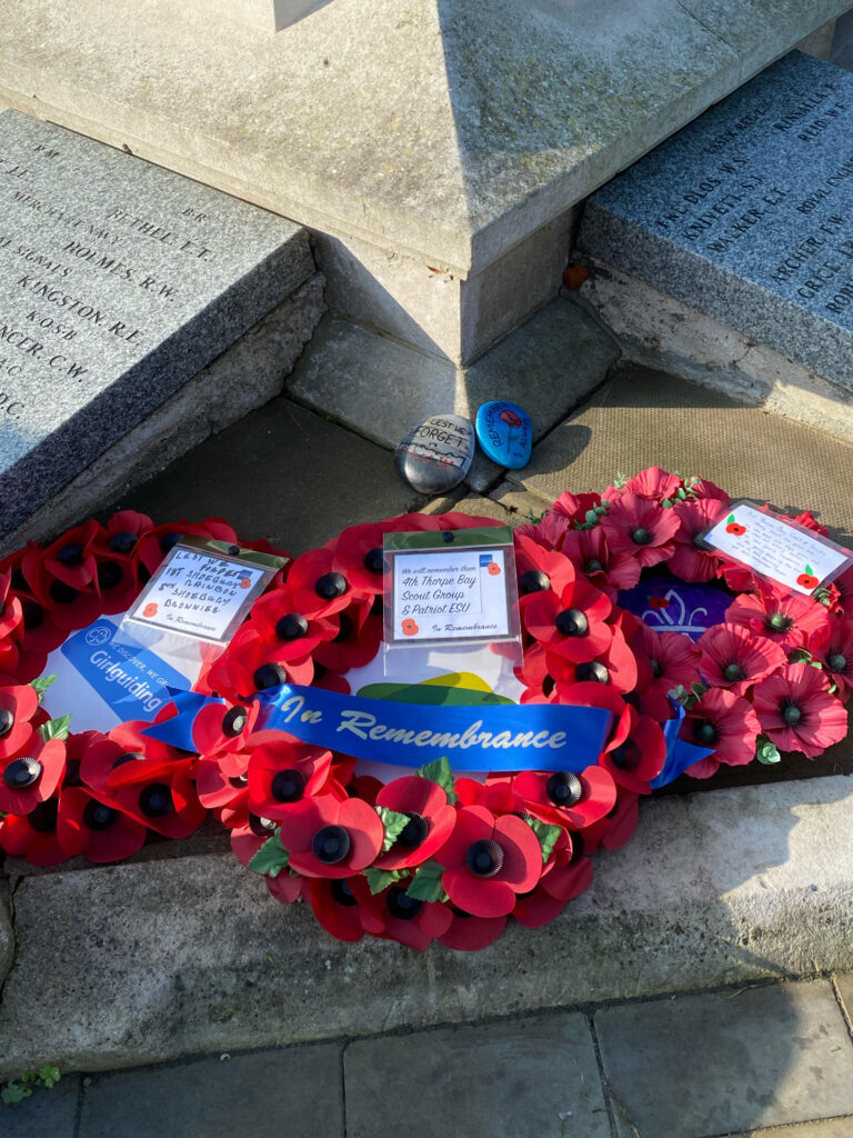 Remembrance Day was a bit different this year, under lockdown rules we could not pay our respects in our usual way on parade with the rest of the District. But that did not stop the group showing their appreciation to the those who have died in the line of duty. The Beavers used their artistic skill to create a poppy wreath which was displayed at the DHQ. The Cubs also got creative, painting remembrance stones, as well as joining the two-minute doorstep silence at 11 am in uniform. We still managed to present a poppy wreath at the Shoeburyness cenotaph on Remembrance Sunday. Never forget.
